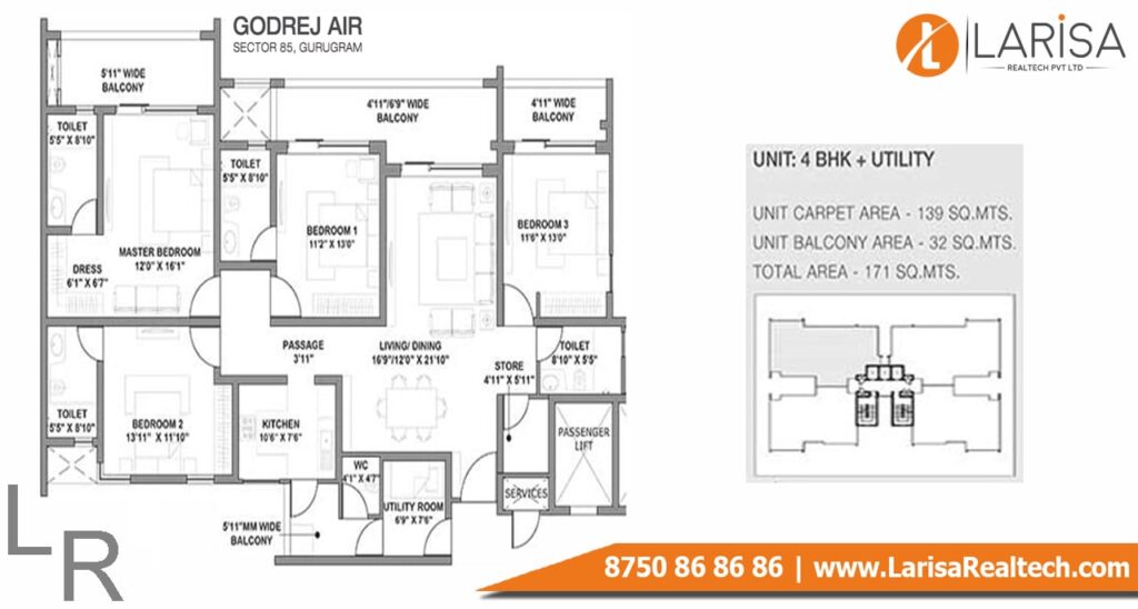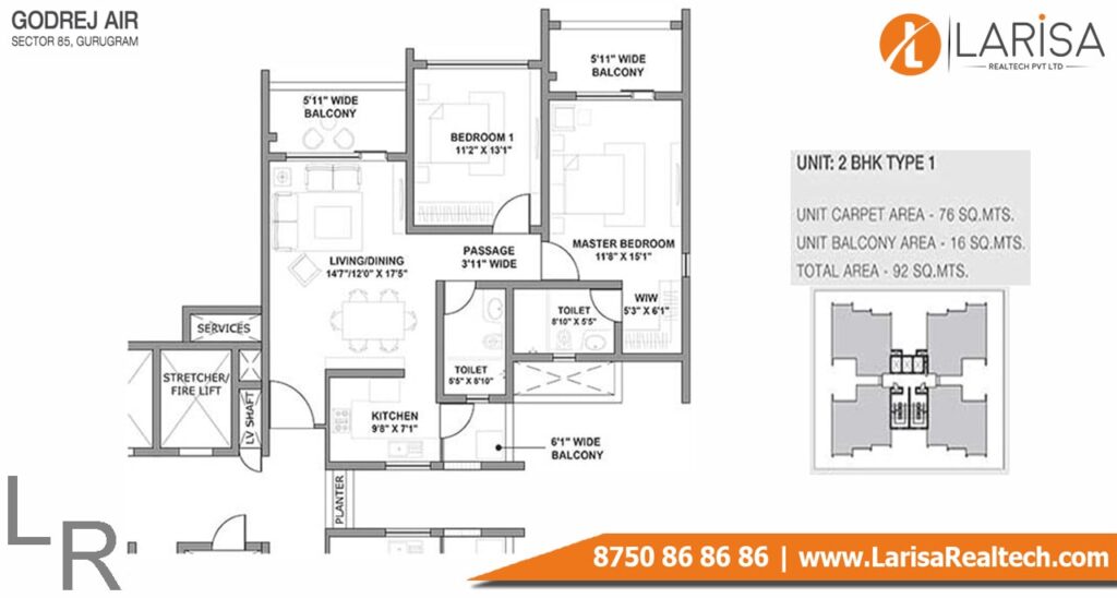 Godrej Air is one of the luxurious projects in this Millennium city. This project offers 2BHK, 3BHK, and 4BHK luxury apartments with modern architecture and premium amenities. The super area of 2BHK apartments starts at 990 sq. ft, 3BHK apartments super area starts from 1292 sq. ft to 1507 sq. ft, and 4BHK Apartments super area starts at 1841 sq. ft. And their price starts from (83Lacs* to 1.61Cr*).